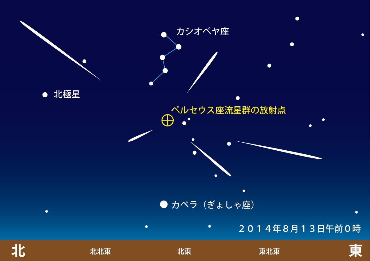 ちなみにペルセウス座は午前0時ごろは北東の方角にいます。